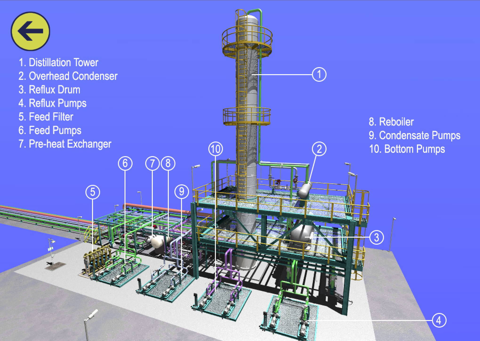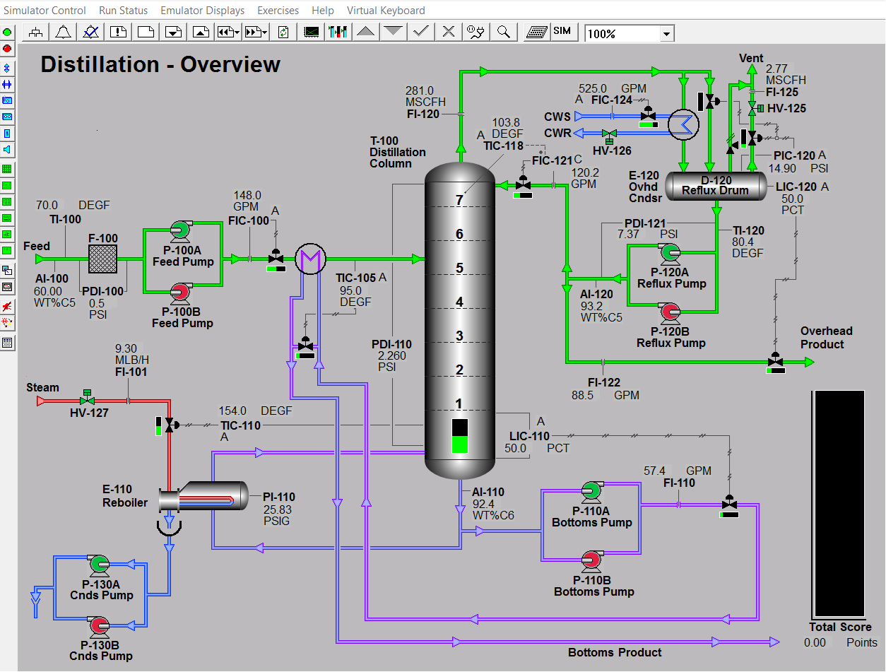 An overview of the distillation column in the virtual chemical plant UI